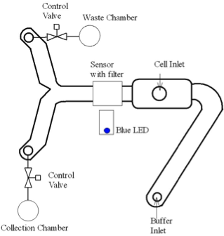 Micro Aerospace Solutions has been working on a micro-scale Fluorescent Activated Cell Sorter (FACS). This device is designed to be hand held and allow sorting of cells that have fluorescent characteristics such as green fluorescent protein (GFP) or live/dead staining. It could also be applied to any antibody or other staining system that takes advantage of fluorescence. The FACS system takes advantage of microfluidics to create a cell sorter that can fit in the palm of the hand.
